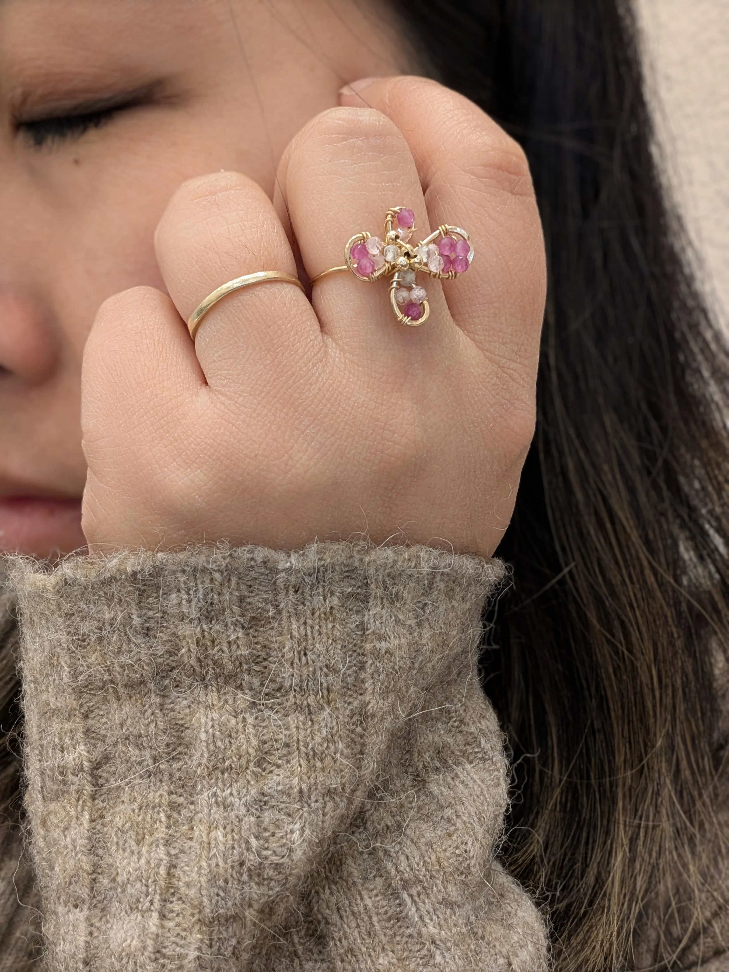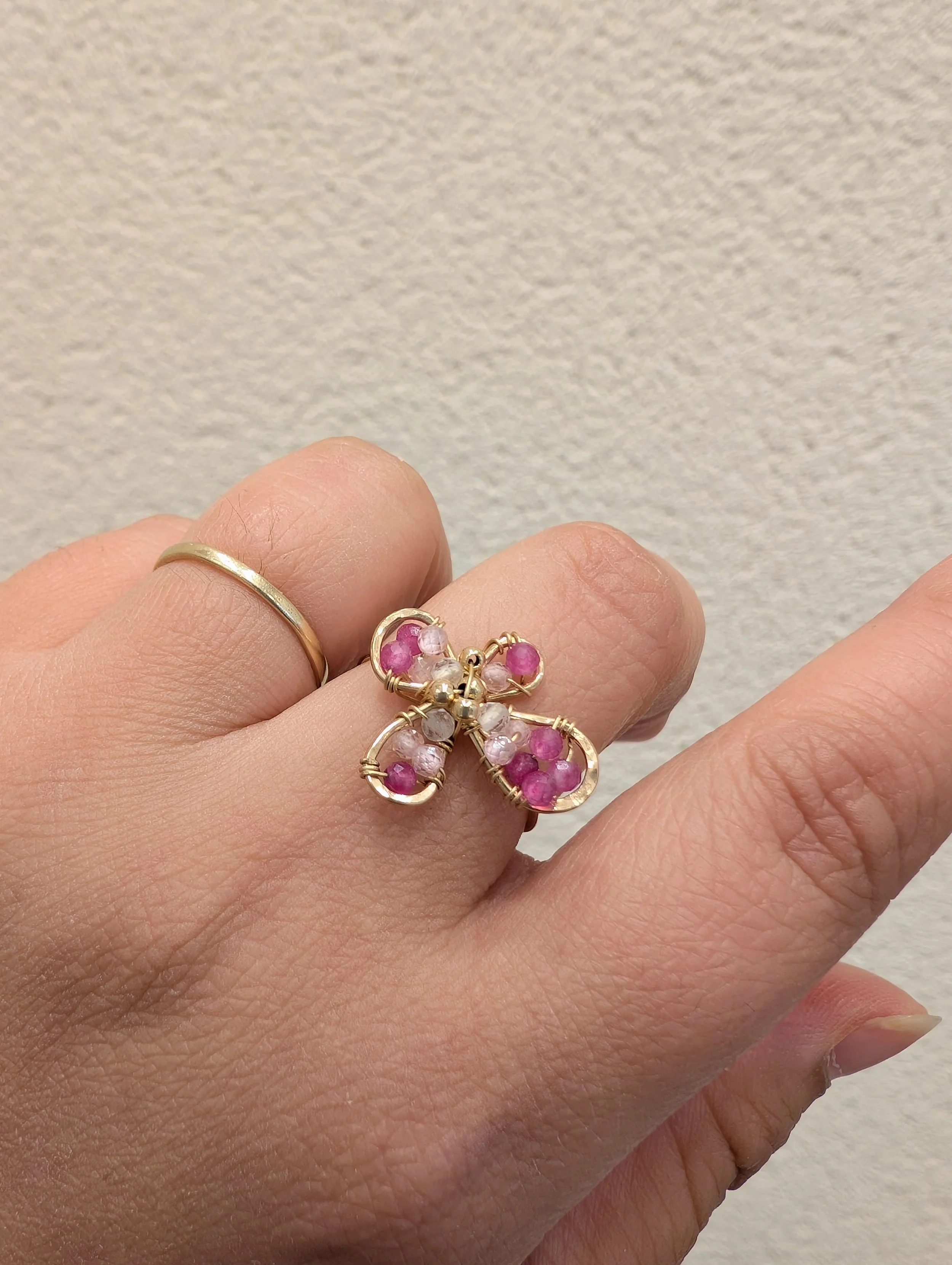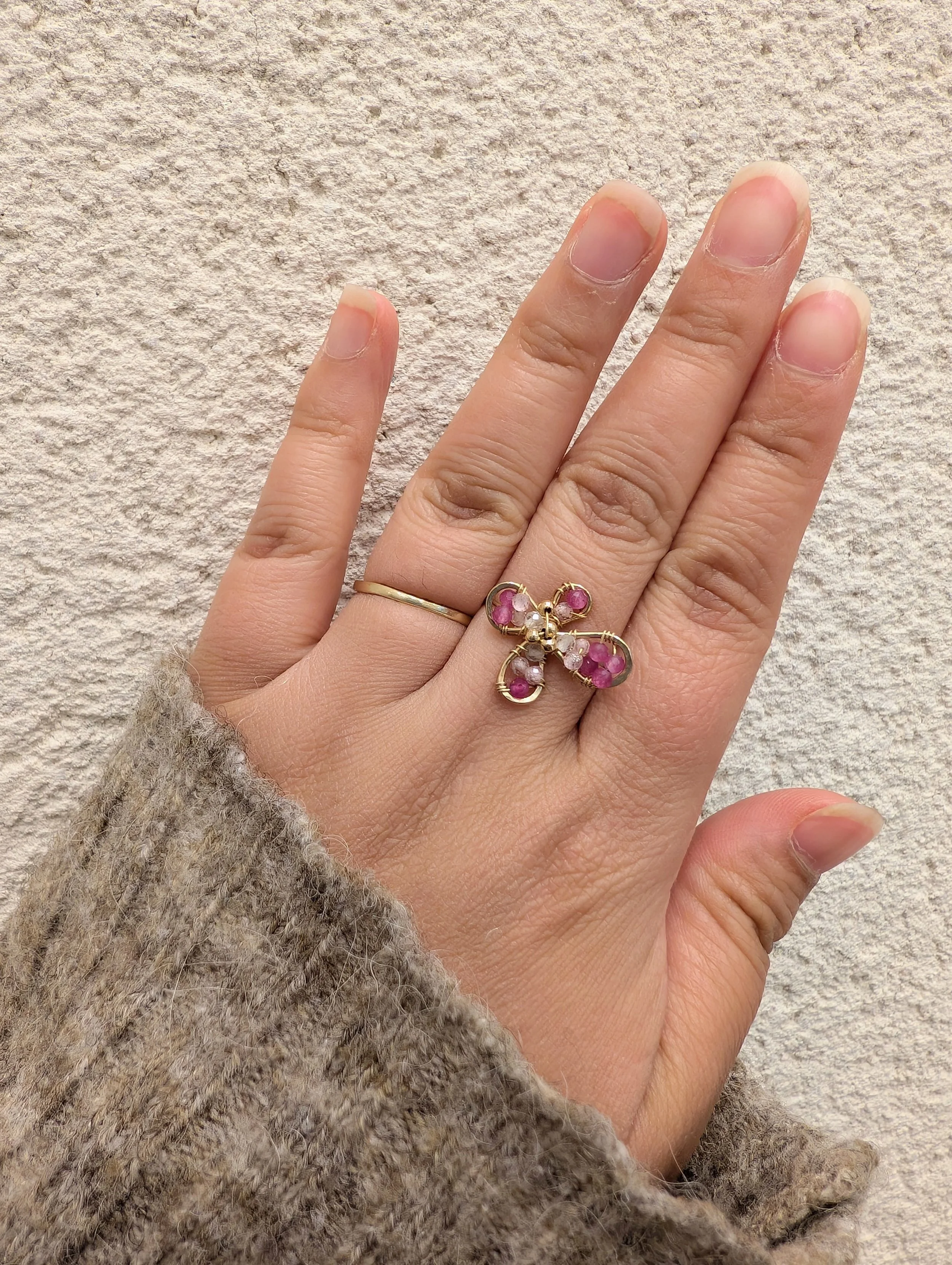 Cette bague apporte une touche poétique et colorée à la mai, tout en restant élégante et facile à porter au quotidien.