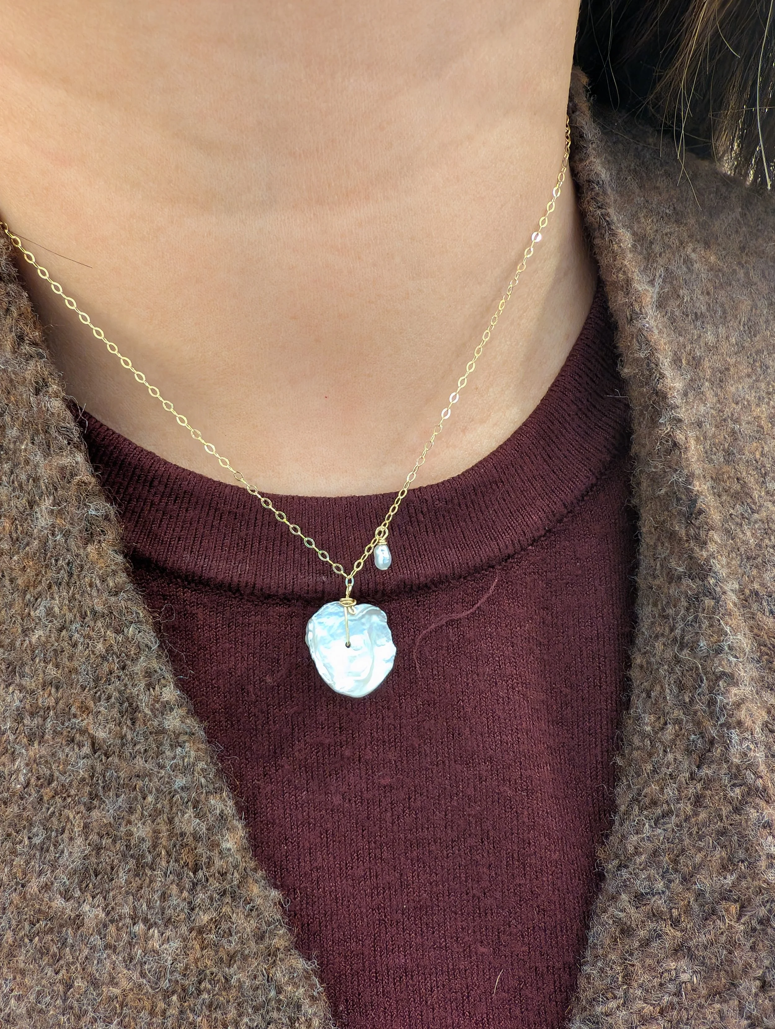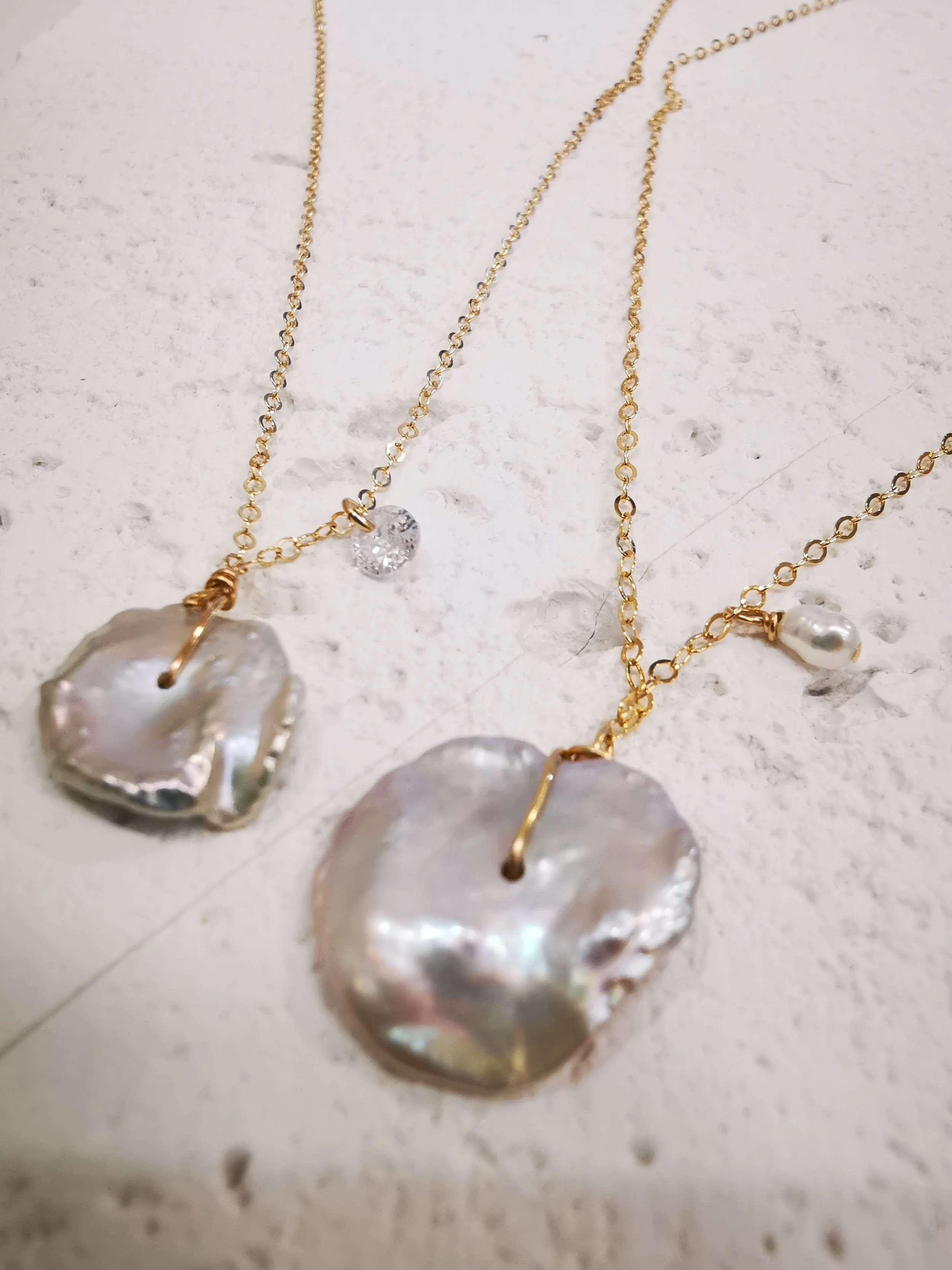 2 colliers avec uns perle plate, un avec le zircon,, un avec une minis perle