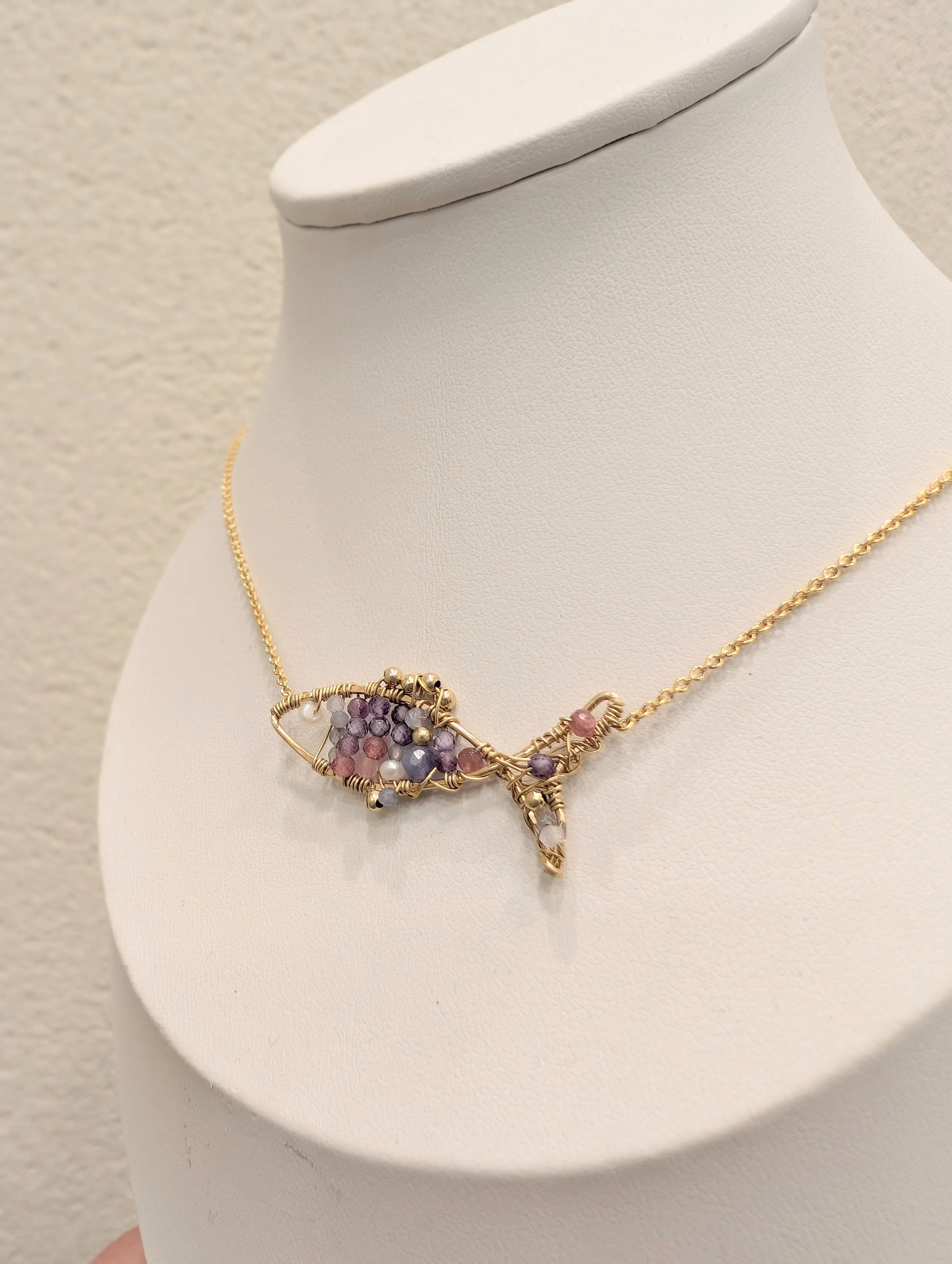 Un collier en forme de poisson, au design très original, une pièce unique qui se distingue par son caractère créatif et audacieux.